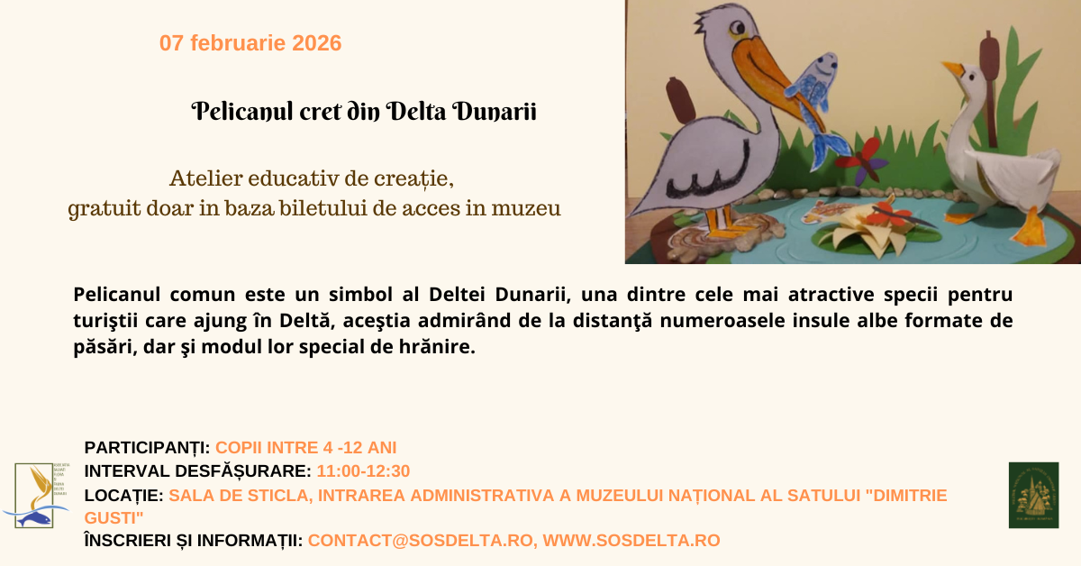 Sambata – 20 aprilie 2019 incepand cu orele 11:00 va asteptam in cadrul unui atelier de creatie sa invatam despre animalele din Delta Dunarii.